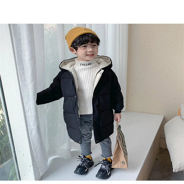 Kids Down Long Outerwear Winter Autumn Teen Cotton Clothes Boys Girls Cotton-Padded Parka Coats Big Children Thicken Warm Jacket
