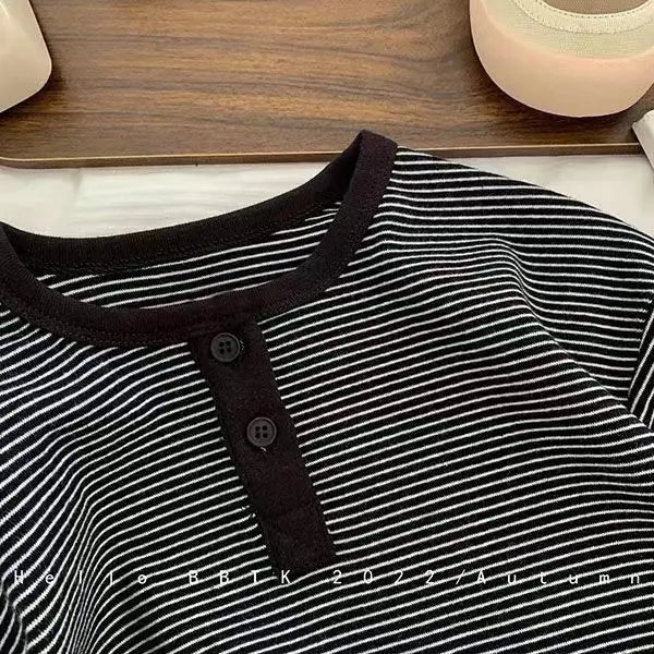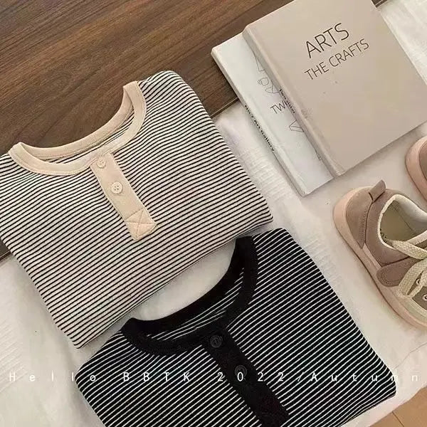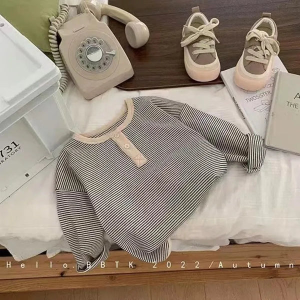 Children's Spring Autumn Long-sleeved T-shirt Boys Girls Korean Striped T Children's Warm Bottoming Shirt Baby Simple Top