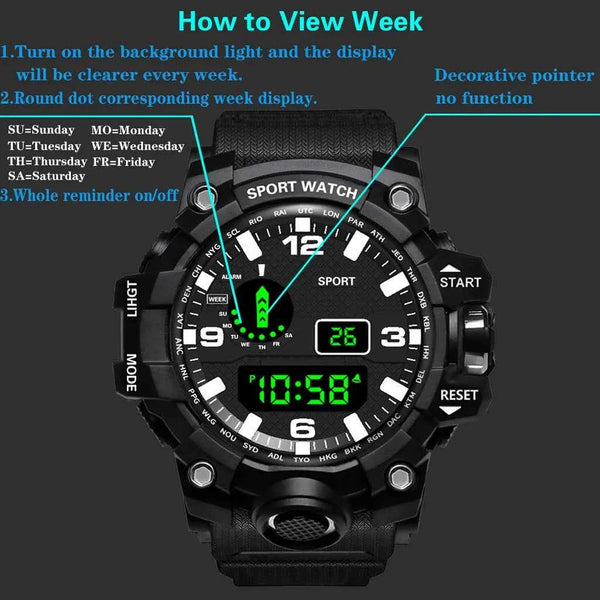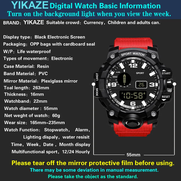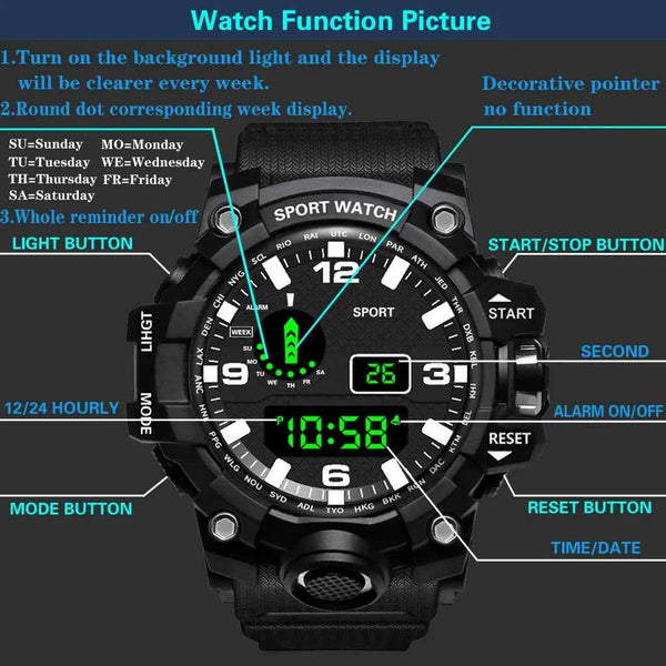 Feature: Stop Watch,Back Light,Shock Resistant,Led Display,Repeater,Luminous,Complete Calendar,Alarm,Week Display