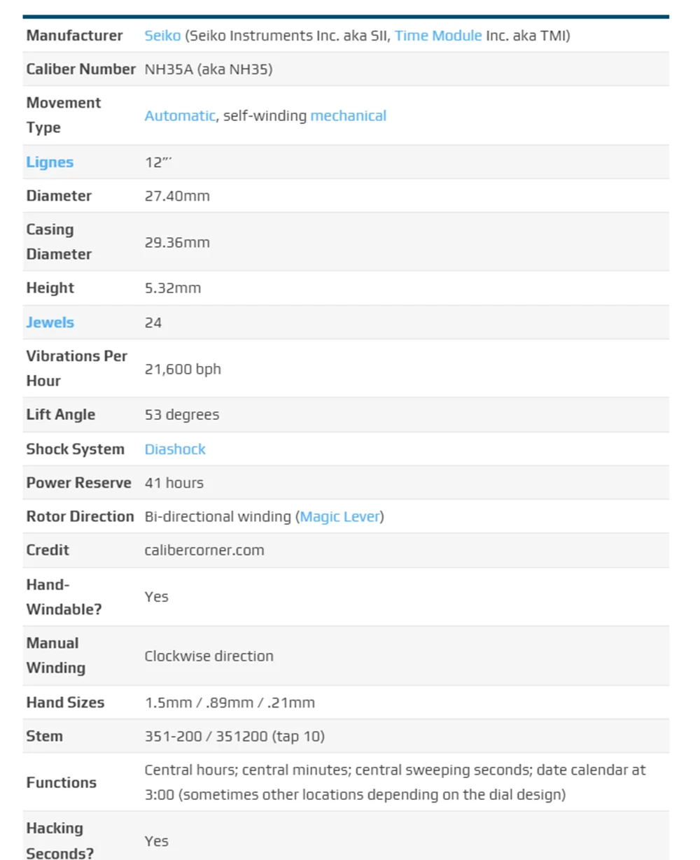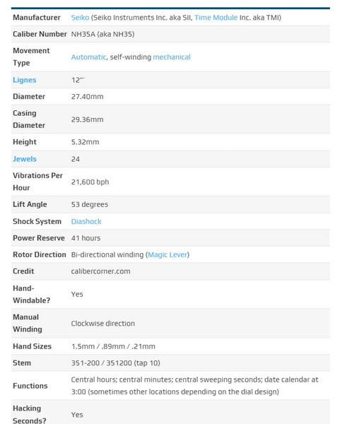 Movement Number: NH35 NH35A (aka NH35)