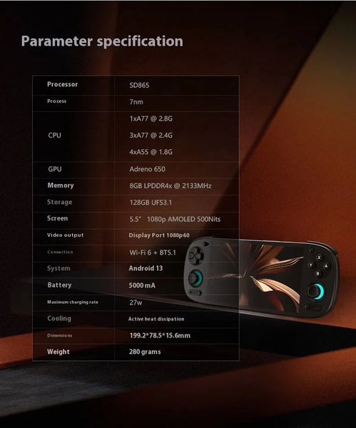SPECIFICATIONSBattery Capacity[mAh]: 5000Brand Name: Retroid PocketCategory: Handheld Game PlayersColor Display: YesDisplay Size: 5.5 inchGames Type: PSPGames included: 0Hign-concerned Chemical: NoneMaterial: ABSOperating System: AndroidOrigin: Mainland ChinaPackage: YesRecommended age: 14+Retroid Pocket Model: Retroid Pocket 5Screen Resolution: 1280x800Supporting...