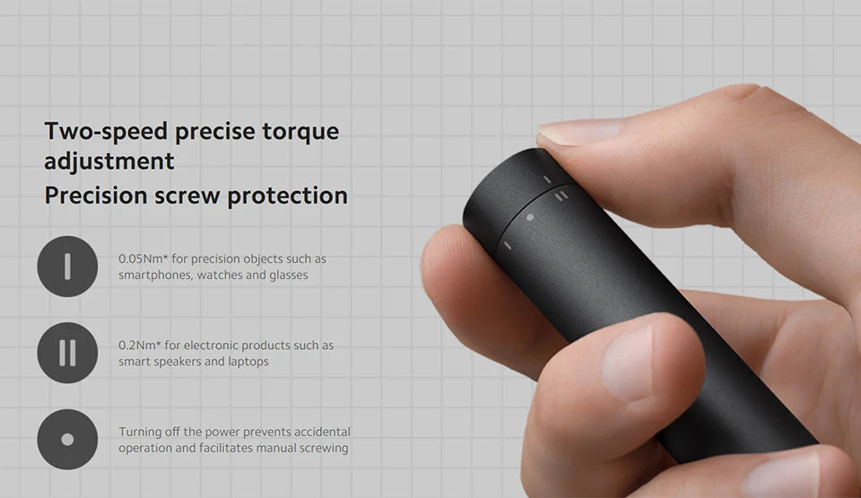 SPECIFICATIONSBrand Name: XIAOMICharging specifications: 5V--0.14ACharging time: 160-200minChoice: yesHex: 0.7/H0.9/H1.5/H2.0High-concerned chemical: NoneIn Type: W1.5Lithium battery: 350mAhMaterial: Alloy SteelMaximum manual torque: 3NmMaximum torque at level I: 0.05NmMaximum torque at level II: 0.2NmModel Number: MJDDLSD003QWNet product weight: 353gNet...