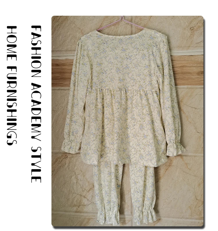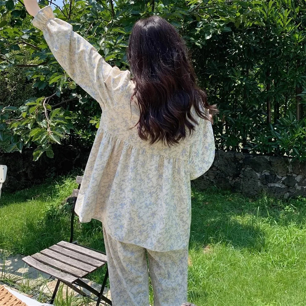 Four Seasons Can Wear Korean Style Floral Women's Pajamas Tops and Pants Summer Student Sleepwear Homewear Girl Sweet Nightwear
