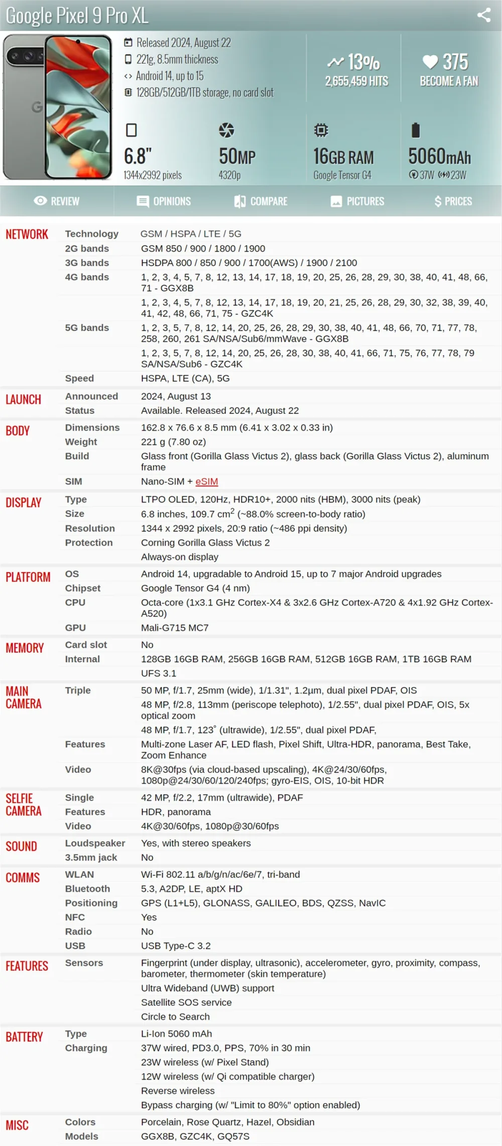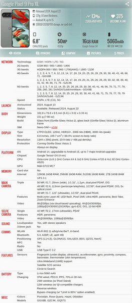 SPECIFICATIONS3.5mm Headphone Port: NoBattery Capacity Range: 4500-5999 mAhBattery Capacity(mAh): 5060Battery Type: Not DetachableBiometrics Technology: Fingerprint RecognitionBluetooth Version: YESBrand Name: GoogleBuilt in radiator: YesBuilt-in GPS: YesCPU Model: OtherCellular: 3G,2 G,4G,5 GCertification: CE,FCCCharging Interface Type: Type-CCharging Power:...