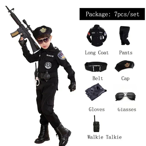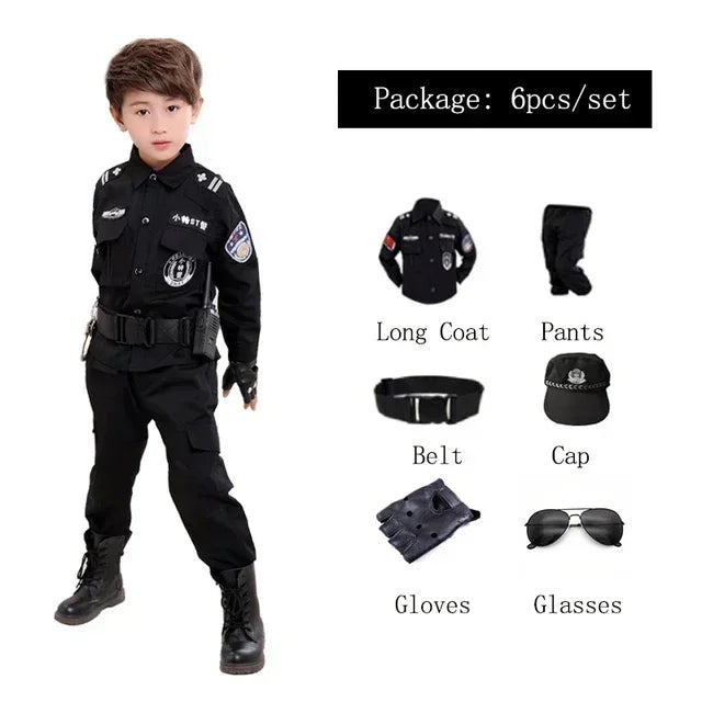 2025 Halloween Nieuwe Kinderen Jongens Meisjes Grappige Politieagent Kostuums Kinderen Politie Uniform Cosplay Kleding Pak