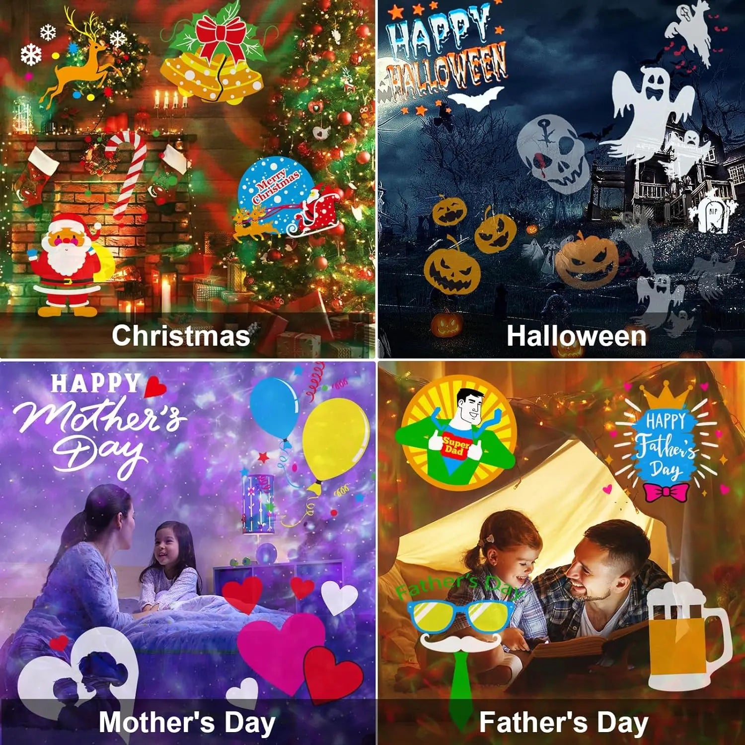 Halloween Christmas Projector Lights Outdoor 16 HD Slides, 2 in 1 Water Wave Lamp with Color Patterns, Timer & Remote for Party