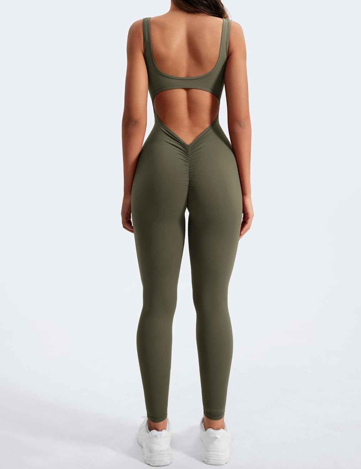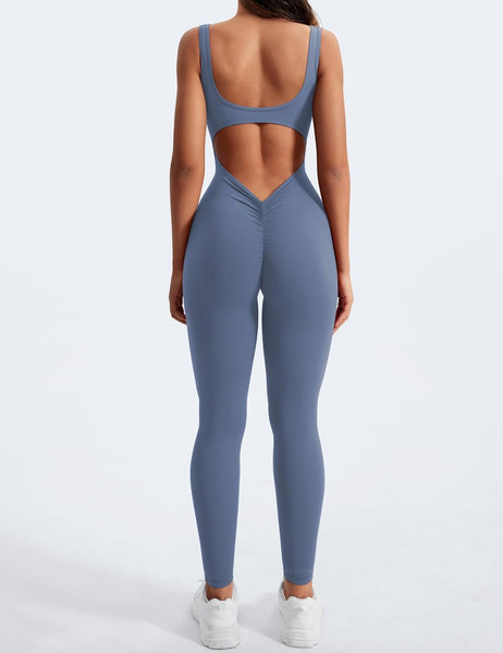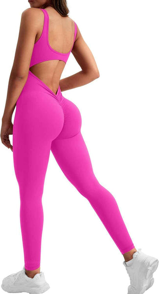 This jumpsuit features a stunning backless design that accentuates your back, combined with a bodycon fit that hugs your figure perfectly. The V-back detail adds an extra element of allure, making it an excellent choice for both exercise and casual outings. With its scrunch butt design, this romper lifts and shapes your rear, giving you that perfect hourglass appearance everyone desires.