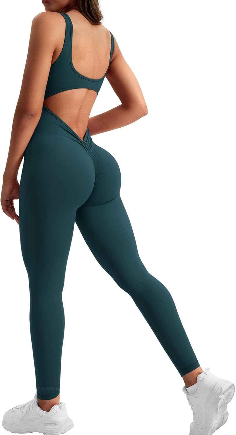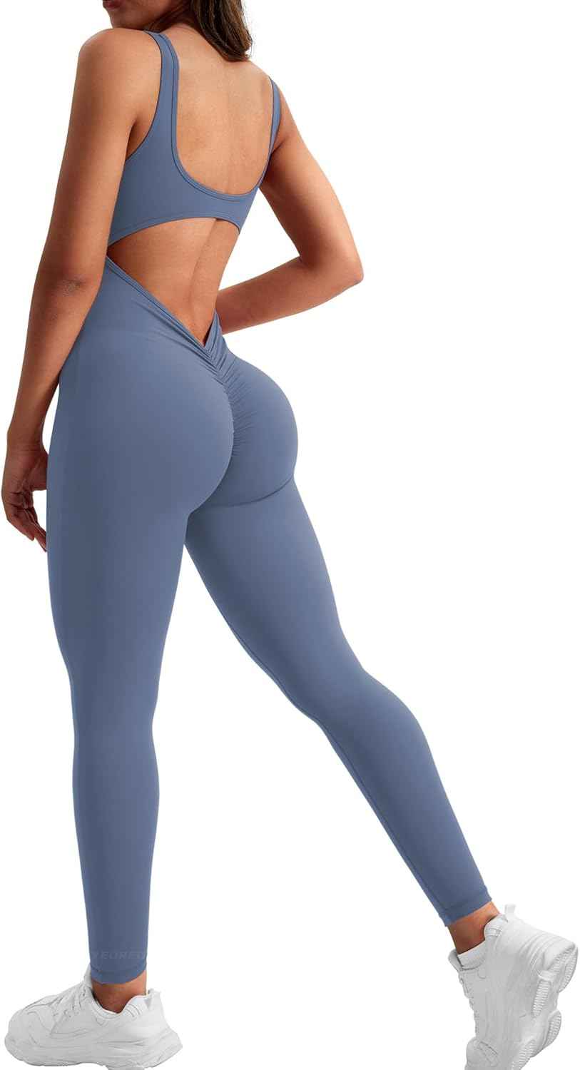 Here are some key features of the Backless Gym Bodycon Lizvette V Back Scrunch Butt Rompers: